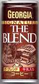 四国限定の製品である。香川県在住のGEORGIA収集家のGEORGIさんに郵送していただいた(感謝・感激!!)。それはそれとして味の方だが、妙な甘さと、後味の酸味がたまらない。デザインのほうだが、ブレンドだけに天秤が描かれている。どうも手抜きに思えてしょうがない。THEのないが、どっちが元祖かはわからない。 |